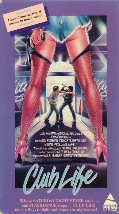 “Club Life,” the mid-1980s saga of a young, cocky club bouncer’s rise, fall and redemption (written and directed by Norman Thaddeus Vane), is the first movie I collected for this blog (off Amazon.com) that I decided to keep. I’d been curious about it since grade school, when I read a one-out-of-four star review in “Rating the Movies,” calling it “a sordid affair.” Janet Maslin’s snarky New York Times review of “Club Life” (which was shot in 1984 but not released nationwide until 1987) further intrigued me with its claim that “only Tony Curtis is any better than the material.” Indeed, Curtis, though he made “Club Life” while in the final stages of his cocaine addiction, hadn’t lost his good looks or lustrous screen presence. Playing a Los Angeles disco club’s macho yet wistful owner, Curtis appears only intermittently in “Club Life,” which is mostly dedicated to the extremely lightweight story of Cal, the young bouncer (portrayed by Tom Parsekian), but he still dominates every scene he’s in.
