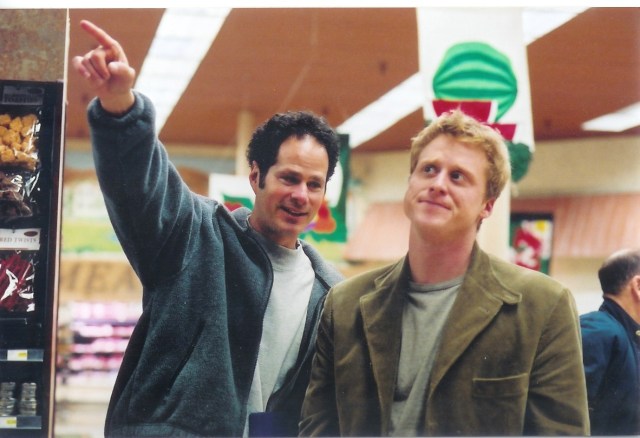 Charlie Loventhal (left) and actor Alan Tudyk on the set of Loventhal's "Meet Market," 2003