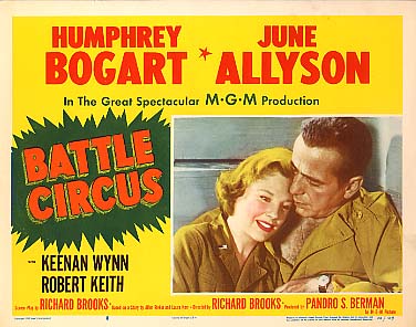 “Take the High Ground!” and “Battle Circus,” both released in 1953, are the ultimate “gun for hire” pictures. They are studio assignments, not movies. In the wake of the Korean War, Hollywood wanted more war pictures, so Brooks made them. And both movies are about as passionate as that sentence. In “Battle Circus,” an army surgeon (Humphrey Bogart) romances a nurse (June Allyson) amidst gunfire in Korea. That’s about it. They flirt, they kiss, they occasionally duck for cover from enemy fire, all at the same army camp (shot at Fort Pickett in Virginia). “M*A*S*H” this is most certainly not; about the best that can be said is that the tanks look real–because they are real. I rented this one from Video Room.