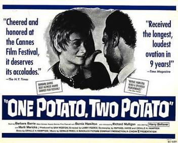 “One Potato” is a condemnation–more mournful than scathing–of the infamous miscegenation laws that were still enforced, at the time of the film’s release, in 16 states. Three years later, the revolutionary Loving v. Virginia Supreme Court ruling lifted the ban on interracial marriage, though several states continued (and continue) to defy that law. “One Potato” is most notable for the heartbreaking performance of Barbara Barrie, which earned her a Best Actress award at the Cannes Film Festival. She plays a white divorcee and single mom who marries and eventually bears the child of her black boyfriend (Bernie Hamilton). Though her daughter adores her stepfather and half-brother, Barrie’s vindictive and racist ex-husband (Robert Mulligan), turns to the courts to ensure he receives sole custody of his daughter.