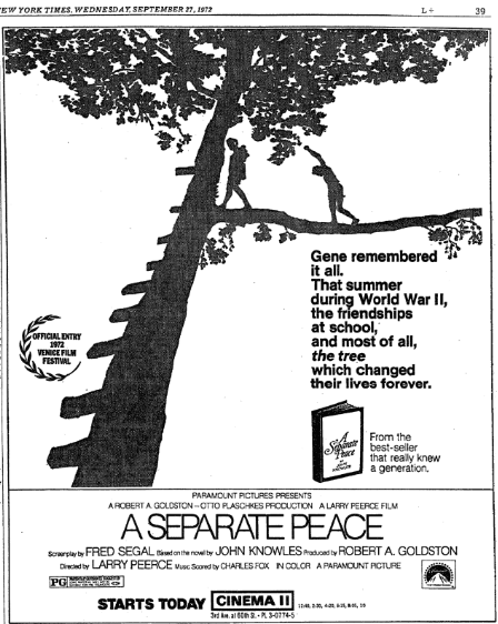 SW: Moving on to “Goodbye, Columbus,” [SPOILER ALERT!] I had to ask about one part of Philip Roth’s book that was excised from the film [adapted by Arnold Schulman]: the scene where Richard Benjamin’s character first tells Ali MacGraw’s to get a diaphragm. She’s so adamantly against it, bursting into tears, because of the sneakery she’s going to have to pull off with her parents. He really lashes out at her and pressures her. Philip Roth is not afraid to show the cruel side of his protagonists. And she ends up giving in and then of course the final scene is the big argument before their breakup, about her hiding the diaphragm badly and her mom finding it. The film softened that one side of Richard Benjamin’s character. You don’t see him yelling at her about that, so when they break up, you feel more for him than for her. What led to that decision?