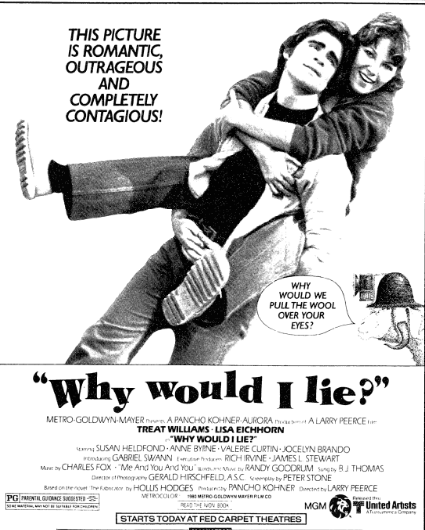 I felt that Peerce’s entire repertoire, not just the acclaimed 1960s films he is proudest of, deserved an in-depth look. (I was most interested in Peerce’s vast range with regard to subject matters and genres, a trait he shares with other diligent filmmakers covered on this site, such as Richard Brooks, Don Shebib and Rick King). Most of his films have not been publicly discussed since the press junkets accompanying their releases, and, as noted, several were hard to track down (especially the 1980 Treat Williams comedy “Why Would I Lie?”; there’s a $19 DVD at TrueTVMovies.net).