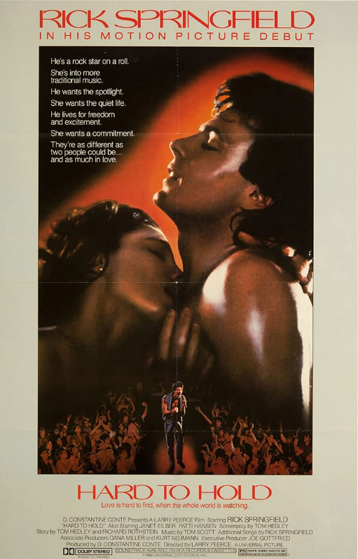 SW: Despite your aforementioned indifference to rock n’ roll, your next film was the Rick Springfield vehicle, “Hard to Hold.”